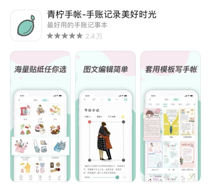 风格:有很多模板可以免费套用,有写便签和写手账两种功能,做手账足够用了。