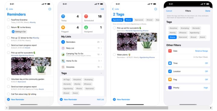 “今天”、“计划”、“旗标”、“全部”和“已分配给我”智能列表可自动整理和显示临近提醒事项。