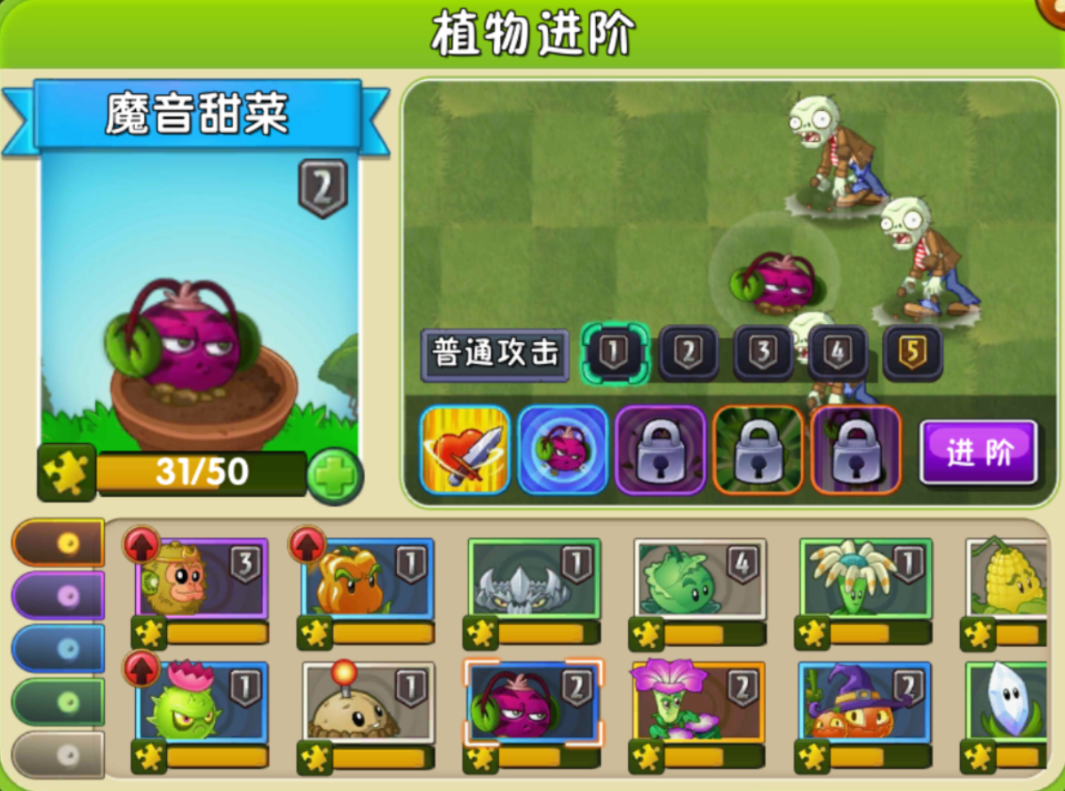 个人感觉,魔音甜菜是这次无尽商店里最有用的植物了,配合飓风甘蓝释放的“魔甘大法”乃是无尽神器。不过尴尬的是,最近每日挑战中魔音甜菜出现的概率非常的高,现在几乎人人四阶了,所以这次无尽商店更新魔音甜菜,对多数玩家来说并没什么大用。在这里狂人要提醒大家一下,甜菜最好不要升五,会影响魔甘的效果,升到四阶就够用了。