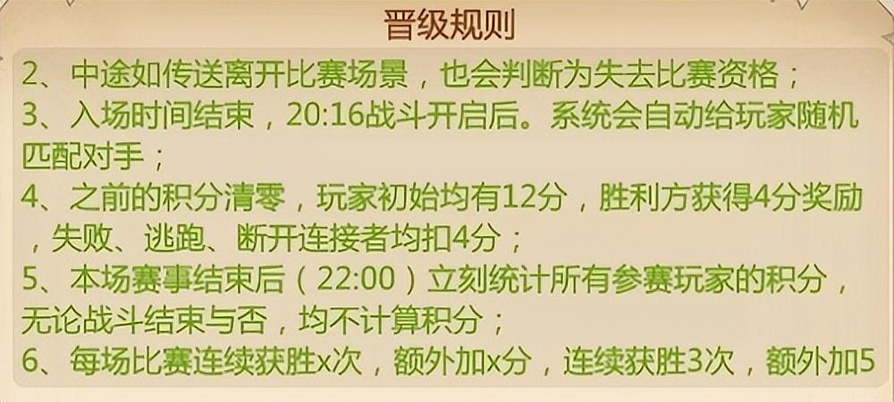 本次16进8淘汰赛规则在入场时间、遏止中途退出场地、连胜加分和同分排名断定等方面规则,都和石器时期跨服积分赛赛段规则相似。有所不同的是本赛段中之前的积分清零,每位参赛选手初始积分变为12分。选手有6次应战机遇,成功方可取得4分,失败、逃窜、断开衔接的石器参赛选手会被扣除4分。
