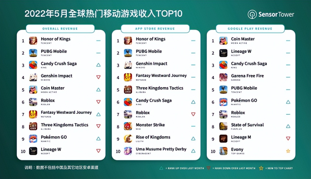 2022年5月全球热门]移动游戏收入TOP10