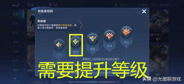 王者荣耀排位英雄熟练度多少才能玩(王者荣耀排位英雄熟练度机制)