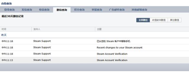 笔者昨日在上网时,突然收到邮箱提示,steam的邮件,提示我steam账号移除手机,然后是提示更改邮箱,我很快反应过来我应该是被盗号了,而且是连邮箱一块被盗的,因为在看到邮件几分钟后邮件就被删除了(QQ邮箱即便删除也能查看删除记录)。所以我赶紧检查自己电脑。也没有发现木马,也不知道账号是如何被盗的。