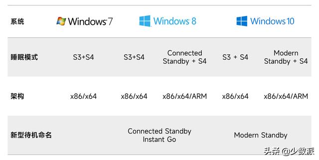 早在 Windows 8 时代,微软就认识到了 S3 睡眠模式的不足,那时,微软期望 PC 能够在睡眠模式下也能正常连接网络,所以微软推出了一个新式的睡眠模式并命名为连接待机(Connected Standby),即在保证系统和设备处于 S0 响应速度的基础上,又能有 S3 的功耗控制。而在 Windows 10 中重新更名为新型待机。