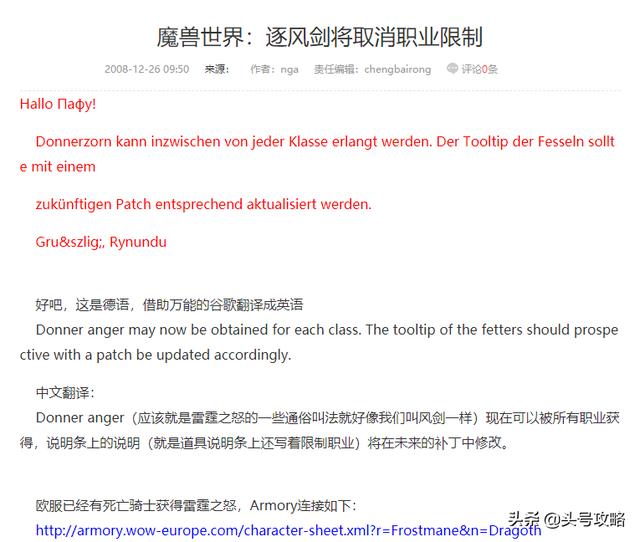 实际上暴雪第一次取消风剑限制还是在3.0WLK的时代,当时加入了死亡骑士英雄职业,为了方便统一规则,很多物品都取消了职业限制,其中就包括了风剑。
