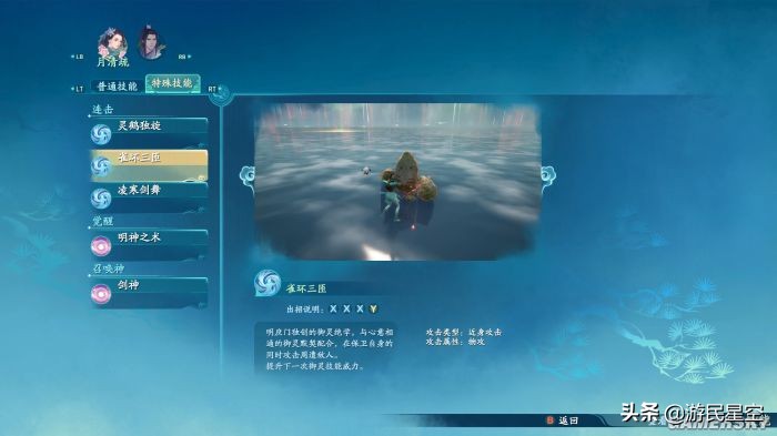 玩家在轻攻击进行到特定阶段时,按下重攻击,可以打出特殊的派生招式,通过消耗魔力,还可以释放技能盘上的剑招与仙术,它们在技能盘上的位置可以被更改,从而更符合玩家按键习惯。