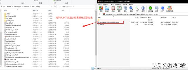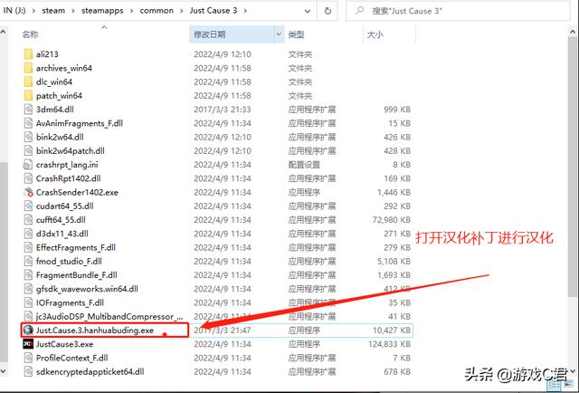 注意2:直接拉到游戏根目录后,打开汉化补丁!