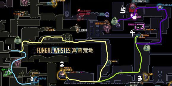 ⑤(可选)向右打开前往真菌荒地的近路,救青虫,拿蘑菇孢子