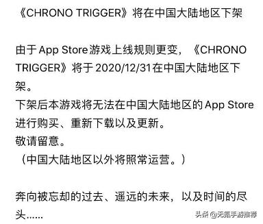 注意:12月31号,因为版号原因很多的游戏会下架,《时空之轮》等游戏已经确定要下架,是否能继续玩还是一个未知数,所以玩家请谨慎下载。