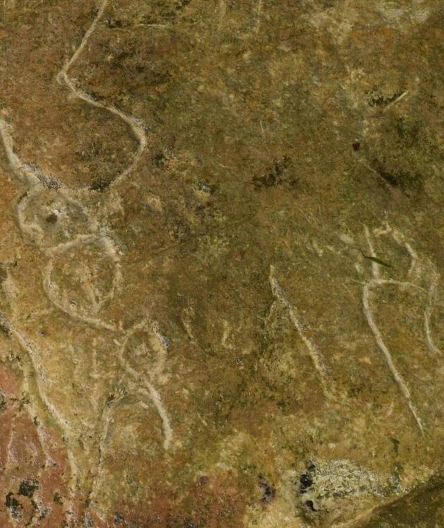 图14、15、16、17、18、19、20、21是一组神秘的图画,这些人物、植物、符号、矿硐图、巫觋和龙形图符等,不可能是孤立的符号,而应该是用于祭祀而刻画的神灵题材。神话学家袁珂先生说:“神话是原始先民文化思想的总汇”。(注④:袁珂:《中国神话史》,重庆出版社2007年版,第4页)文学家沈冰雁先生也说:“我们的古代史,至少是禹以前的,实在都是神话”。(注⑤:陆思贤:《神话考古》的“后记”,文物出版社1995年版,第369页)文明时代只有三四千年的历史,在文字出现之前的文化形式可能就属岩画了。