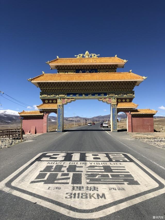 回到理塘县,从这里开始继续318,在这还看到两个徒步的拍视频,上海人~一边说唱一边拍。跟这在地上印刷的好应景!