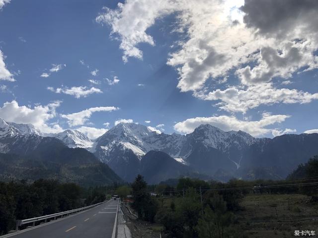 米堆冰川出来后一路特别好走,而且远处的冰山,两边的森林树木,这个感觉太好了。我在开车没怎么拍照,就是听着歌慢慢开车!(把车上俩懒汉叫起来,放了一首:直到世界的尽头,80后的回忆啊、童年啊。特别应景,感触很深!本人87)