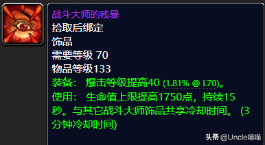 这款高级爆击等级提高的饰品可谓是一代的经典了,无论是PVP还是PVE都其实还是都可以的,虽然侧重面可能偏向于PVP,但是你用来提高爆击等级打PVE也未尝不可,经典饰品用过的都说好,推荐指数满天星辰直戳天花板,我戳我戳我戳戳戳!