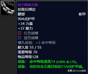 这条板甲腰带真的非常的不错,高力量高耐力还自带双插槽附送3点命中等级提高,加上本身的14点命中提高来说已然不俗,而且还有154点的无视护甲值加成可谓相辅相成值得推荐,推荐指数满天星辰。