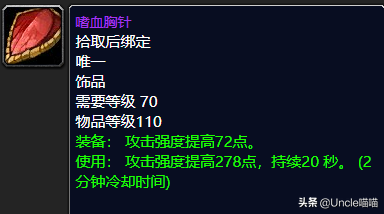 红色鳞片饰品,我想一般玩过物理系职业的玩家应该对此饰品不会陌生了吧,虽然物品等级只有110,虽然你只需要花费41个公正徽章,但是它带给你的绝对物超所值,堪称经典,稳定提高攻击强度72点的话喵叔已然想不到可以与之相媲美的那么高性价比的饰品了,主动使用下攻击强度提高278点之多持续时间也是高达20秒,实在是爆发输出利器,两分钟的冷却CD也是续航中的法拉利堪称一流,推荐指数满天星辰之戳天花板,我戳我戳我戳戳戳。