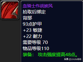 这款敏捷披风的话其实也是一款中规中矩的东西了,你说不上那里好,但是也说不出那里不好,如果你真的手中牌子还是富足的,而且又刚好少那么一件紫色披风的话,那么我想只需要25个牌子的血骑士作战披风还是值得推荐的,推荐指数8颗星。