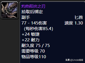 这款匕首的话简单粗暴,属性直观,攻速还是比较快的,就秒伤而言的话对于这个物品等级的装备来说85.4的秒伤已然恐怖如斯了,(喵叔个人对于这把武器真的没有用过,有知道其不凡之处的可以评论区留言与喵叔分享你的心得体会。)值得推荐,推荐指数10颗星。
