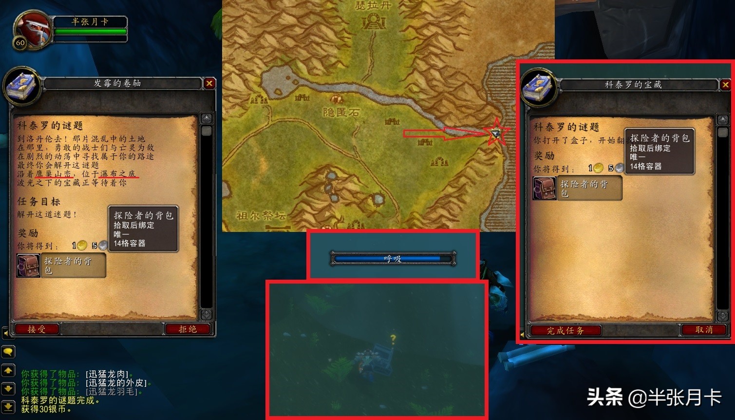 第三步任务给出的提示更加含糊,让你去洛丹伦?肯定是个坑啊!接着往下看,“沿着鹰巢山峦,位于瀑布之底……”不要犹豫,肯定是在【辛特兰】地图!