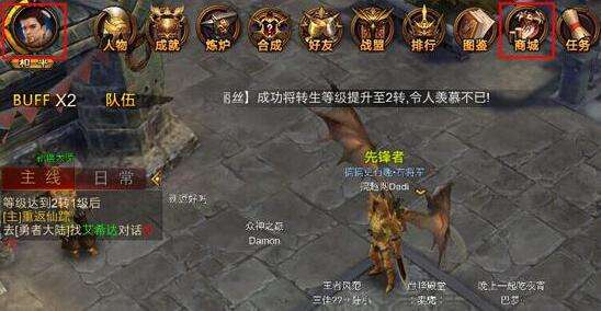1.点击人物头像,在中间一排功能中可以看见"商城".