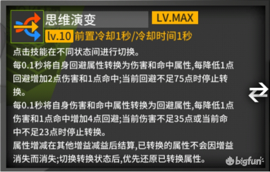 ① 思维演变这个技能总共分为三个状态,按触发顺序分别为: