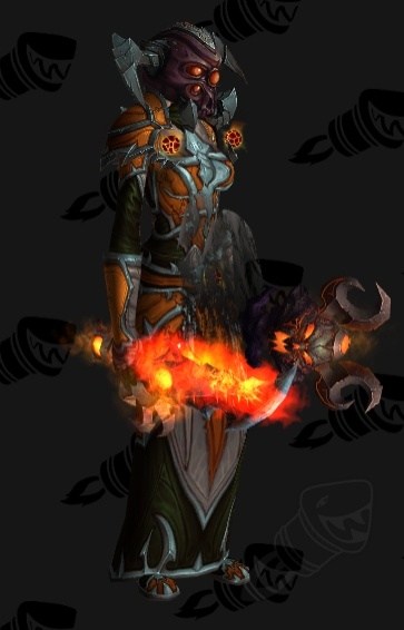 推荐幻化武器: 炼狱之火法杖,奥利瑟拉之锋+熔火的尖啸,缚龙者巨杖