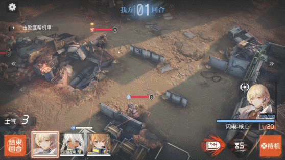 《少前2》的底层玩法采用的是美式战棋的设计。角色除常规的属性克制外,还会因为场景掩体、高低落差等地形优势,获得攻击buff、规避伤害的加成。合理规划地形抢点,是这一玩法的精髓。