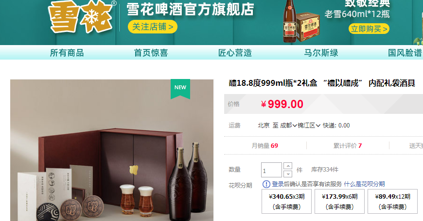 据介绍,醴并不打算如常规的高端啤酒产品主打线下餐饮终端,而是以两瓶装的限定版礼盒形式,只聚焦线上电商销售,定价999元/套,打通礼品和商务宴请等消费场景。
