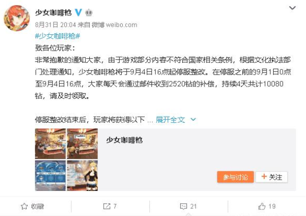 自该公告发出后,《少女咖啡枪》将关闭游戏的充值通道,但在正式停运前,该游戏的功能将不会受到任何影响,玩家仍可以登录游戏。
