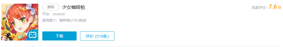 《少女咖啡枪》于2016年11月17日上线IOS平台,于11月23日上线安卓平台,在次月的14日下载量突破百万,总体上来说还是拿到了一个不错的成绩。