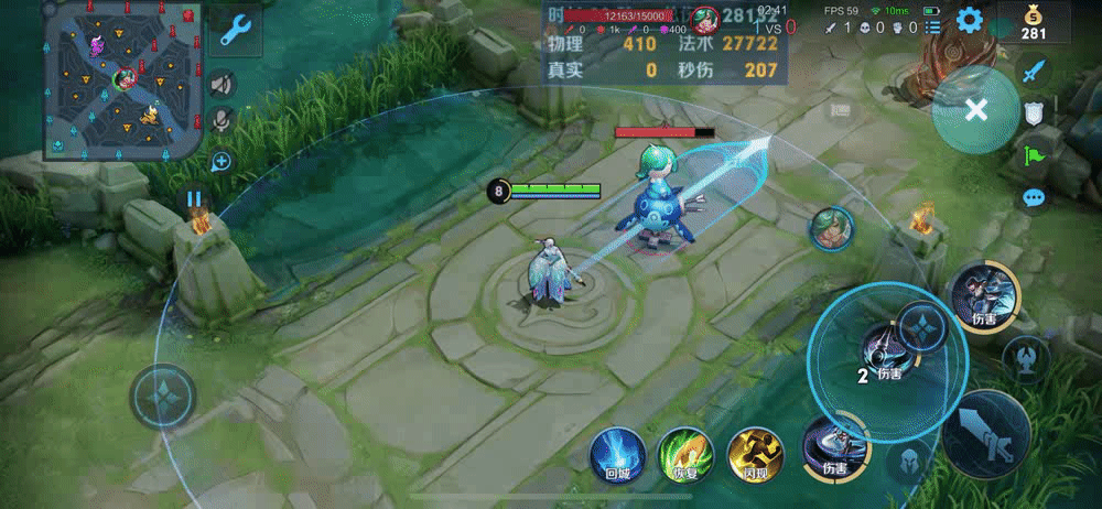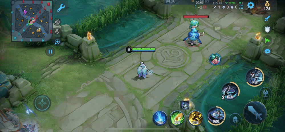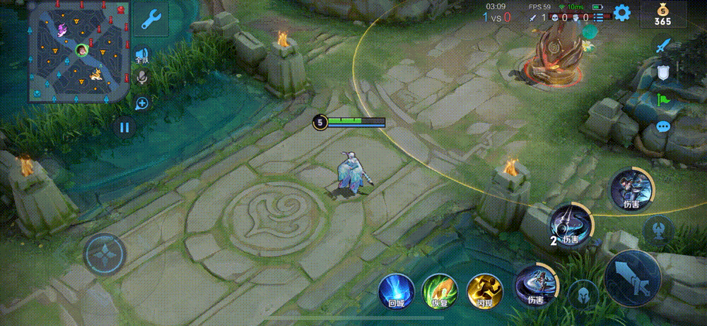 这里还有一点需要注意,很多玩家在释放二技能后直接操纵摇杆释放大招位移,导致婉儿没有踩到二技能使得大招进入冷却。正确的方式应该是:婉儿在释放二技能的同时,向前位移一段距离后再操纵摇杆释放大招。