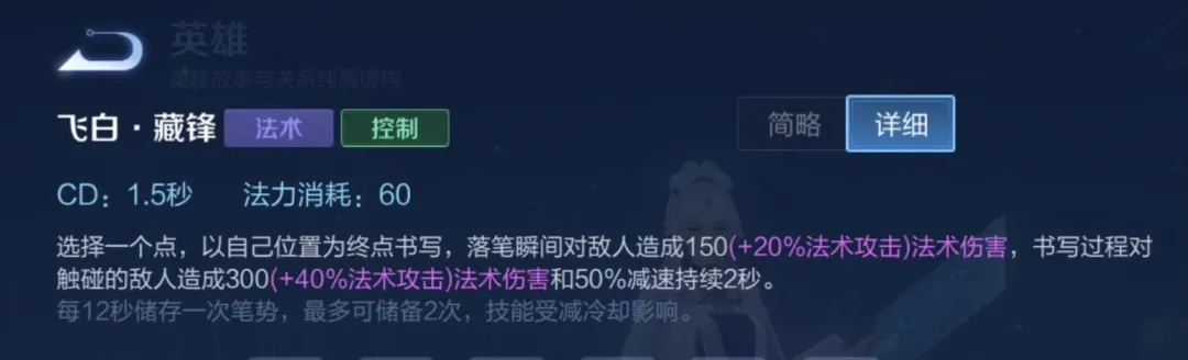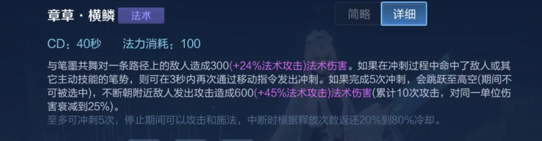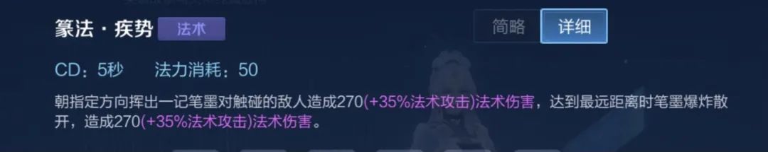 二技能和一技能特性相似,也是最远距离能够打出最大伤害,但是要注意的是,婉儿二技能回笔的路径能够造成减速,二技能的减速是上官婉儿唯一的留人手段。