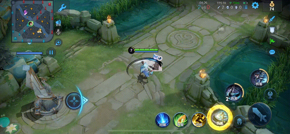 2.在完成一技能两段冲刺后,不要操纵摇杆,快速释放二技能,当二技能距离大约一个身位时再操纵摇杆来解锁大招。