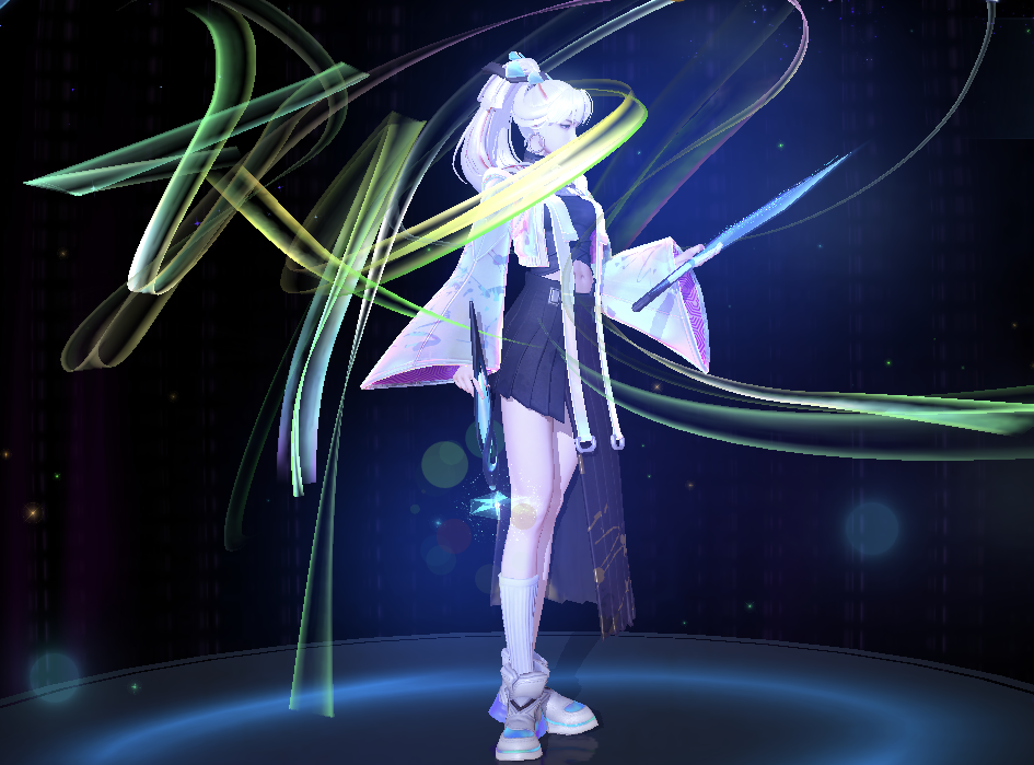 绘梦:甩出去一个K然后炸一圈紫蓝相间的光圈。