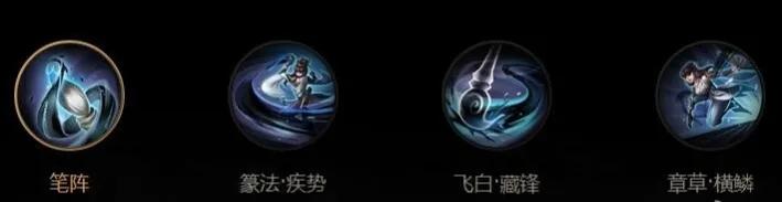 上官婉儿选择一个点,然后以自己的位置为终点进行书写,落笔的一瞬间对触碰的敌人造成法术伤害,书写过程中将会对触碰敌人造成法术伤害和减速效果。毛笔移动过程中,与婉儿其他笔势接触时,会迸发笔力,对附近敌人造成法术伤害。(每 10 秒储存一次笔势,最多可储备 2 次)