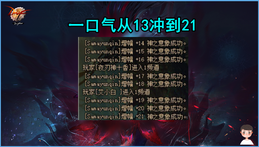 而且这位玩家还同时晒出了增幅记录,从红13开始,竟然一口气上到了红21,中间没有失败过一次,也没有使用过任何垫子,就是直接往增幅器里扔,然后国服第一神巨就诞生了!