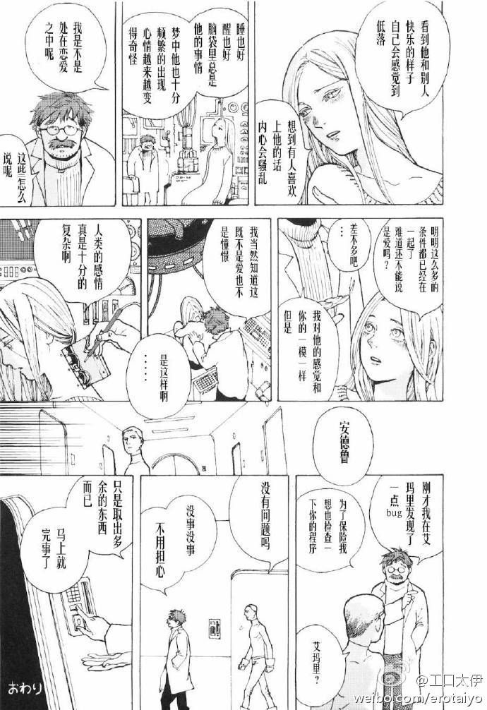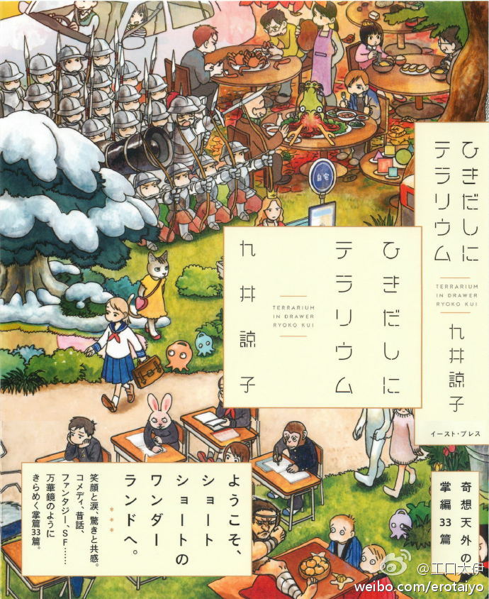 2013年3月,株式会社イースト・プレス再次将九井谅子老湿的短篇作品集结成册,推出《ひきだしにテラリウム》(中译抽屉里的温室箱),这部短篇集主要收录了九井谅子老湿2011年8月~2012年12月间发布的作品,主要包括「湖底の春」、「恋人カタログ」、「かわいそうな動物園」、「龍の逆鱗」、「記号を食べる」、「代理裁判」、「遠き理想郷」、「すごいお金持ち」、「えぐちみ代このスットコ訪問記」等作。 这本短篇集中,仅仅两篇的超小短篇作品「恋」尤其让人感觉回味,下面一道贴出来大家感受下。啊,似乎也有人说这叫逼格…我反正挺喜欢这种调调的就是了(反正博客都没人看)。