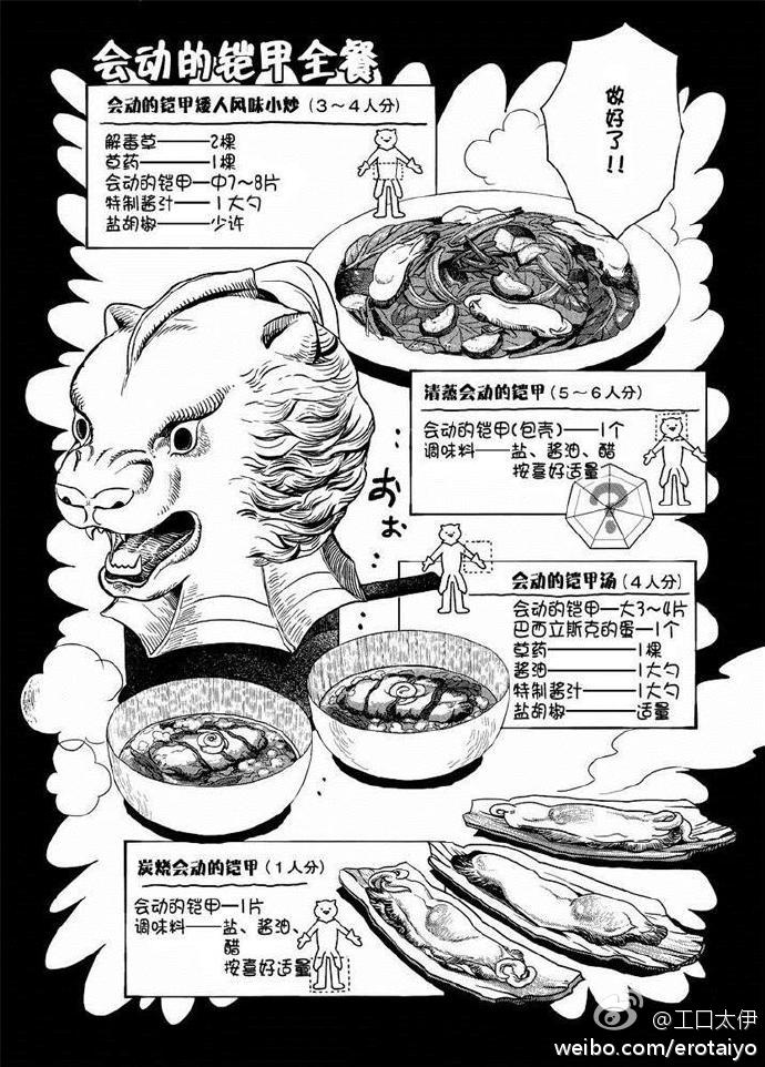 2014年2月,九井谅子老湿开始尝试自己的第一部长篇作品《ダンジョン飯》(中译舌尖上的地下城、迷宫饭等),这部讲述勇者怒闯地下城的魔幻美食大作我可是超喜欢,以魔物做食材什么的并不是九井谅子老湿的首创,但是搞笑的剧情,懒洋洋的作品基调,加上独特的脑内回路,简直让人停不下来。我本身是非常喜欢美食漫画的,当初知晓这部漫画也是搜索美食漫画条目的时候发现的,,每一话都可谓是精彩纷呈,铠甲贝那话我直接跪着看的…