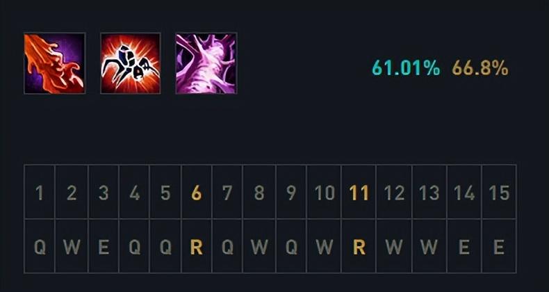 主W副E,Q技能点一下即可。W技能可以快速清野,刷野无伤。Q技能可以恐惧敌方英雄并造成一定的伤害,E技能沉默敌方英雄,有大点大。