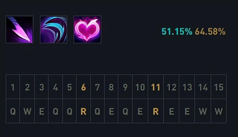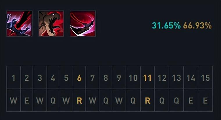 伊芙琳技能方面主Q副E。Q技能是伊芙琳的主要伤害来源也是清野的主要技能,Q技能使伊芙琳获得持续作战能力,还能造成高额的伤害,E技能使伊芙琳能够贴紧敌方英雄,保证技能的命中率,W技能点一下即可, W技能可以对敌方英雄进行魅惑状态,削减敌方英雄的魔抗,从而打出爆发伤害。大招对敌方英雄对残血英雄造成极高的斩杀效果,有大点大。