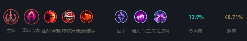 黑暗收割使蜘蛛对低血量英雄造成更高的伤害,恶意中伤使蜘蛛对减速受损的英雄造成额外的伤害,眼球收集器提升蜘蛛法强,寻宝猎人使蜘蛛在参与击杀时可以获得一定的金币副系选择致命一击和凯旋。致命一击对低血量英雄造成额外的伤害,凯旋使蜘蛛的参与击杀后会回复自身的部分血量。