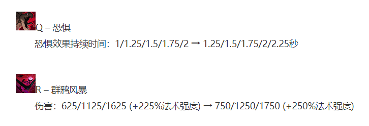 稻草人的恐惧效果以及大招伤害都获得了提升。