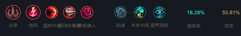 电刑提升稻草人的爆发伤害,猛然冲击配合大招可获得部分法穿效果,眼球收集器提升稻草人的法强加成,终极猎人能够减少稻草人的大招的CD时间。副系符文选择未来市场来提升稻草人前期的经济能力,使稻草人装备可获得小优,星界洞悉全面减少召唤师技能CD时间。