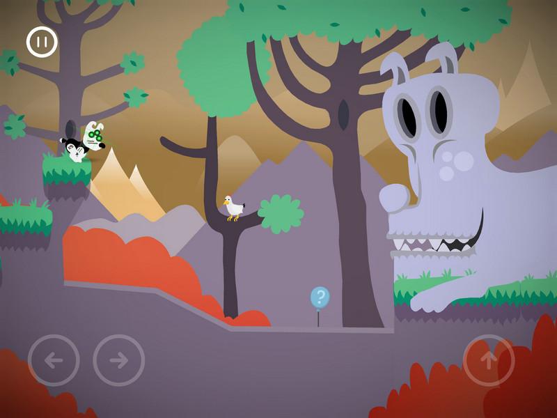刚进游戏,一股清新的游戏风扑面而来,该作采用的是2D式的横版游戏画面。而在画面表现上,该作并没太注重细节元素的勾画,而是用大块清淡的色彩去尽可能展现一个近乎童话的世界,再加上一些剪纸式画风的元素作为点缀,整个游戏画面看起来充满了童真童趣。这种画面算不上有太多出彩的地方,只是一种来自"和谐"的舒服感,让玩家没有太大的排斥。另外,搭配上轻快的的配乐,声画所展现的是一个颇为愉快的游戏体验,也预示着整个故事的开始。