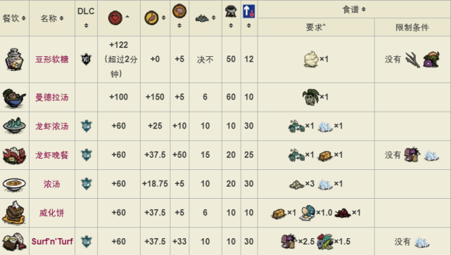 上图中豆型软糖(雷根糖)需要的是蜂王浆,浓汤需要的是3个帽贝。