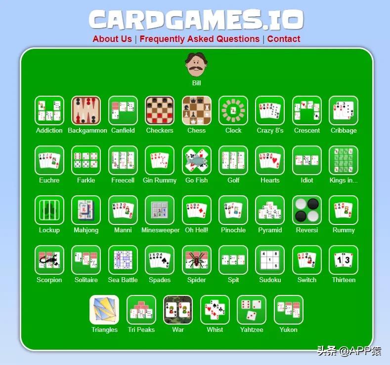 【纸牌游戏大全】游戏站点,这个站点几乎可以玩目前主流的各种纸牌游戏,它具有 35 款游戏,包括纸牌游戏 Hearts、Spades、Cribbage、Euchre、Gin Rummy、Rummy、Pinochle、Crazy Eights 和 fish、纸牌 Klondike(经典纸牌)、FreeCell、Spider、Clock、Pyramid 以及益智和棋盘游戏像双陆棋、黑白棋、跳棋、国际象棋和 Yatzy等,界面画风还挺可爱的,喜欢纸牌游戏的不要错过这个游戏站点。