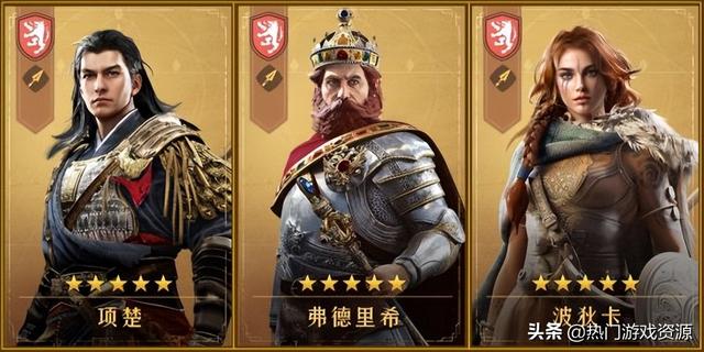 可通过首日卡包霸王降世招募,其中项楚也可通过招募豪礼保底领取,波狄卡和弗德里希可通过签到获取,获得穆英再换下波狄卡,整体开荒实力很强。