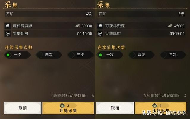 达到5级资源地挑战标准后立马行动,打下一个5级石头和5级木材,我们就可以开始采集,切忌在此之前采集低级资源地,那样会浪费不少资源。