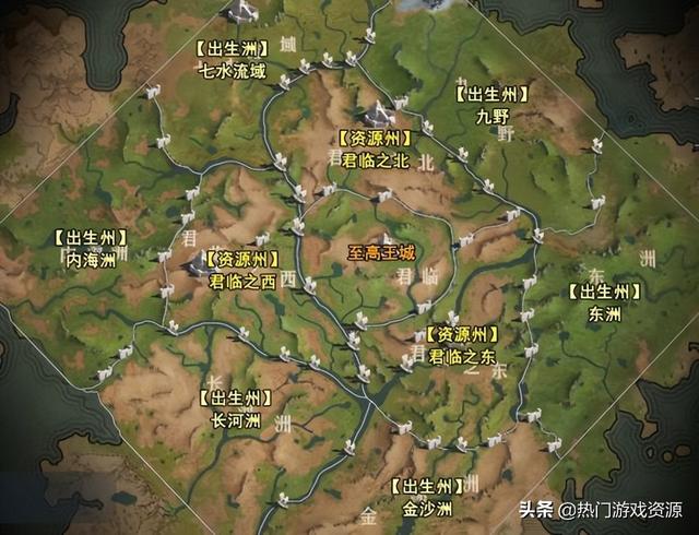 帝国大陆共分六大出生州、三大资源州、核心君临州。在进入游戏后,我们会出现在六大出生州之一的某个位置,由此开启征途。