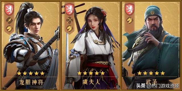 龙胆神将可通过基金领取,武圣和虞夫人可通过首充奖励获取,后期可用假面将军换下虞夫人,组成完全体连击骑。
