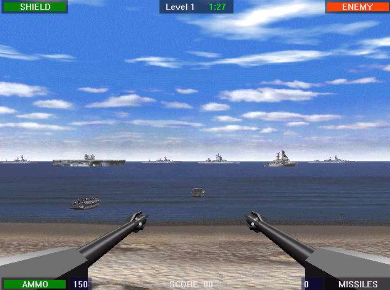 在游戏中按以下的数字键即可实现相应秘籍:1 无敌2 弹药无限直接到下一关g 手枪(只有15发子弹,无限弹药对它没用)m 飞弹,专炸飞机f 照明弹,只在黑夜能用b 求救,会派飞机帮你,不过也可以被你打下来,只在某些关有《抢滩登陆2002》不再只是坚守滩头,玩家这次坚守的阵地改在一个平原的最高点,除此之外,敌人也不再只会从正面进攻,他们在这一代可是会从360度,由四面八方、甚至空降来进袭。新增的敌人与关卡这款游戏都保持着这一个系列的特点,那就是操控简单,玩法容易,玩家所扮演的角色仍然必须在阵地上使用机枪、火箭弹、飞弹等武器迎击敌军,敌军的攻击在初期与前代差不多,一样会先派直升机或是战斗机来攻击阵地,然后地面部队才会进行攻击,当玩家看到F-104在天上飞的画面,应该会感到一阵悸动吧!同样的这款游戏考验玩家的注意力与射击能力,所以如果敌人速度快,可是要先算准时间差再射击,不过与前代一样,弹药要省着点用,不然到最后可能飞弹不够用了,那时要用机枪射下飞机,就………这一代增加了不少新兵种与玩法,除了增加了伞兵这个棘手的东西外,与前代来比较,不但敌人攻击的方法更多样化,比如说增加了夜晚伸手不见五指,玩家要看清楚可得发射照明弹来照明。不过更紧张刺激是敌人此代会进行夜袭,趁着黑夜就好几架运兵直升机降落,而这代还新增了群体攻击的法宝,就是可以请求指挥部”对地轰炸",眼看远方整排坦克和士兵冲过来,标定位置后不久,就可以看到我方的幻象两千来投弹,整个平原被炸此起彼落,可真令人充满快感。特效再加强此次游戏在武器方面已经改为全3D化了,而且这次的敌人的"死法"也更多样化,比如说过去被炸敌人顶多也只会被炸飞而已,但是现在增加了不少种姿态,可以明显看到敌人”喷血”;对象彼此也更有互动性,比如说一群士兵刚从运兵车下来要冲锋时,如果玩家炸了运兵车,不仅会看到车子被炸翻飞起来,还会看到那群可怜的士兵被爆炸产生的火烧得四处挣扎。在地上的尸体或车辆残骸不会像前一代一样会自动消失,因此打一关下来整个战场就到处横尸遍野,好像真的身处在战场一样,而且此代在音效部分也更为真实,玩家如果仔细听,就可以在战斗机还没出现时听到远方有音爆的声音,而在战场上真的与千军万马在做战时,士兵的哀嚎声,敌军武器发出的炮火声,都让这一代对于战争有了更好的演译,而玩家也更有亲临战场的气分。